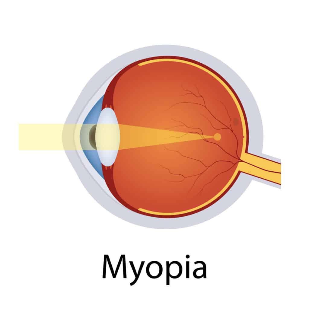 The eyes focus by bending incoming light rays to meet at a single point. Ideally, this single point lands directly on the central point of the retina for clear, sharp images. If the focal point is behind the retina or in front of the retina, the image on the retina will not be fully formed and is interpreted by the brain as being blurred.